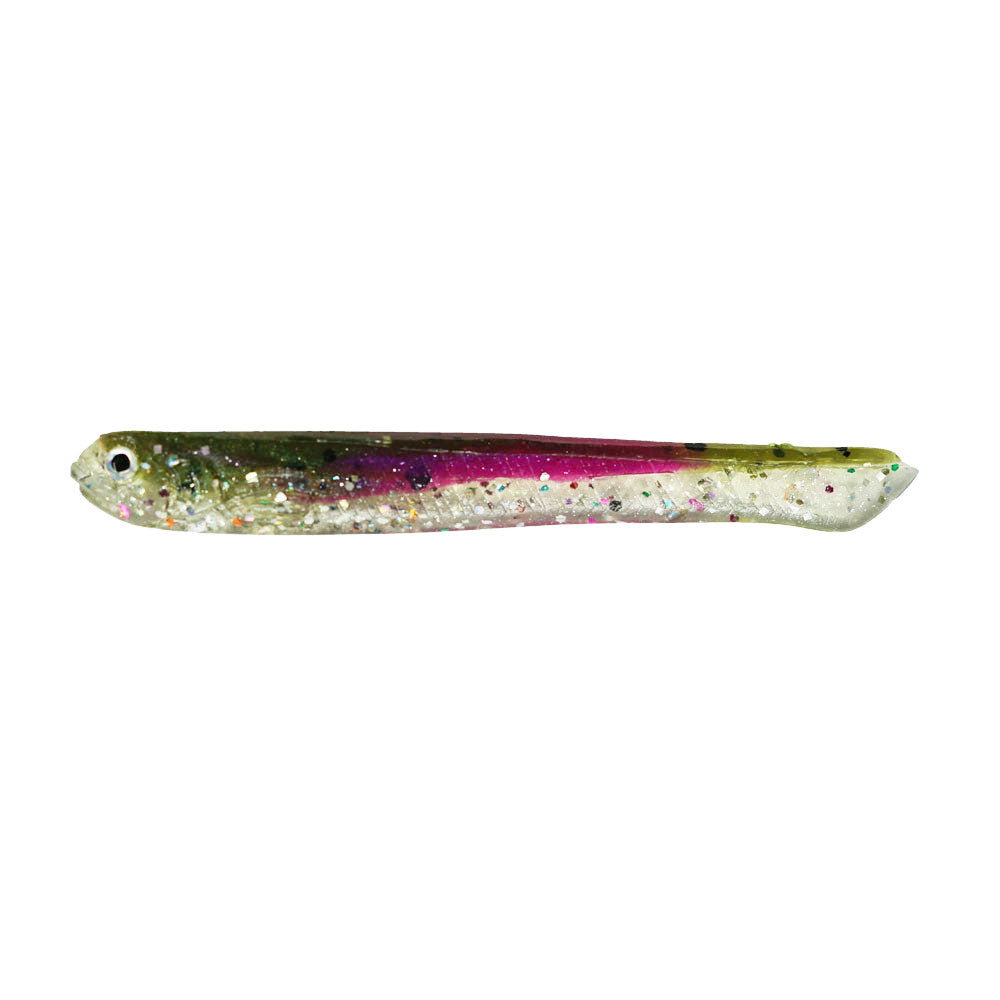 When finicky fish are keyed in on small bait, it’s hard to beat the Dancing Shad. It's slim bait fish profile, realistic eyes, and natural baitfish colorways, make it a perfect drop shot worm and shad imitation when rigged on a jighead or A-Rig. Its wounded baitfish action elicits bites from the most lock-jawed fish. The Dancing Shad's versatility allows anglers to take their creativity to another level. Fish it weightless, wacky, drop-shotted, on a jig, or any way you want, the Dancing Shad is a true live-well filler.