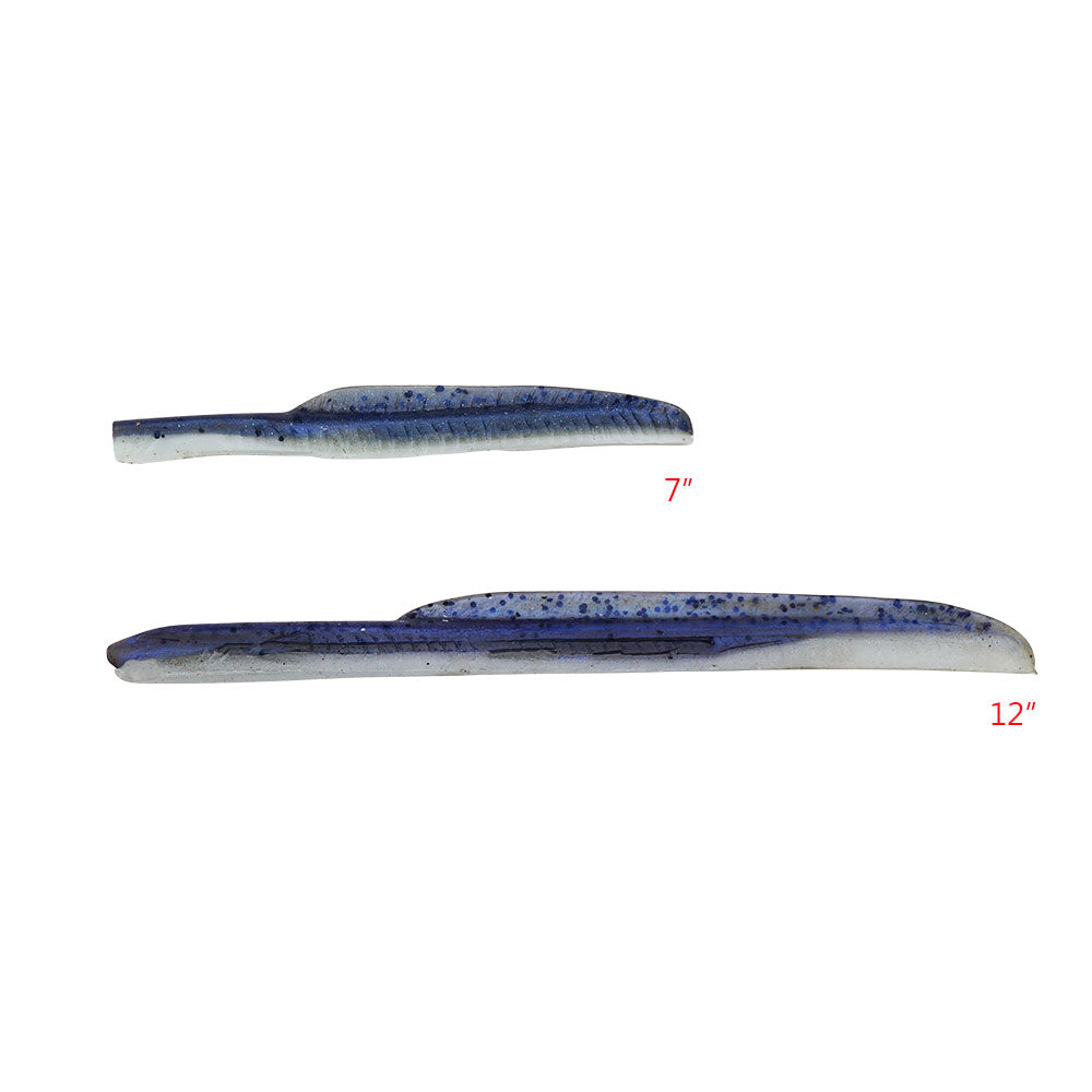12" EEL Quantity: 1 per bag Suggested Rigs&Head Sizes: 2oz to 7oz round or triangle jighead, 11/0 offset hook Suggested Line Rating-For Mono, Braid will vary: 20 - 30lb, 65lb Braid for bottomfishing |