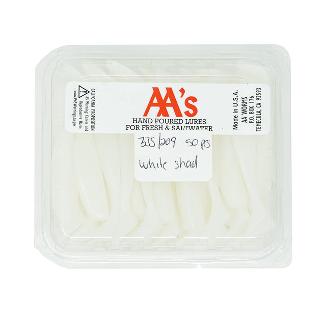 ![[ONE-OFFS] Old AA 3" Junior Shad Mold Pearl White 50 pcs for SPECIAL PRICE](http://aaworms.com/cdn/shop/files/OldAA3in_JRShad_PearlWhite_02.jpg?v=1776200186&width=1406)